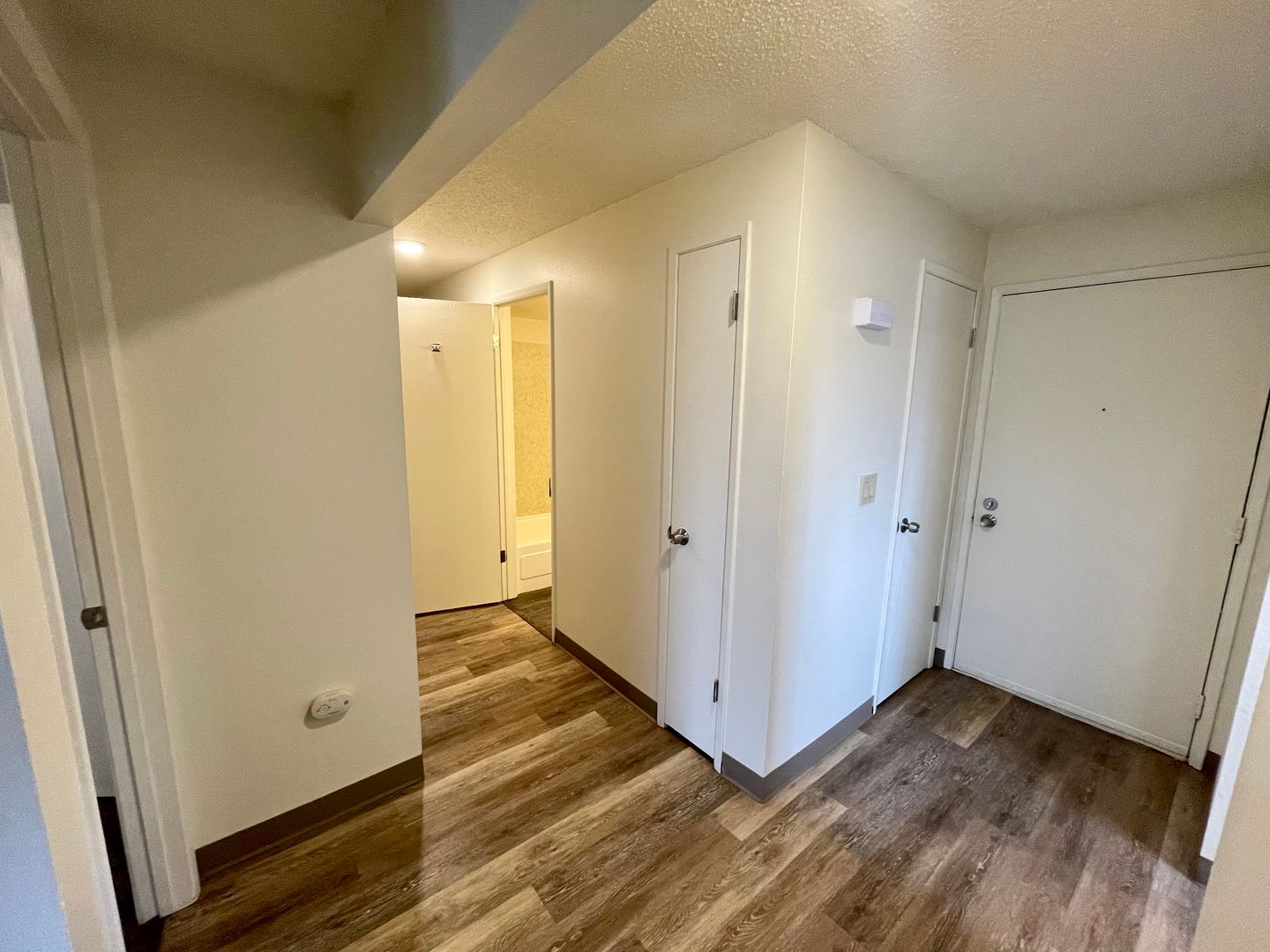 Lovely modern two bedroom unit. Quiet location off the main road and away from traffic. Handsome LPV flooring in main room with lush carpeting in the bedrooms. Patio, A/C, D/W. Onsite laundry. Large green-space and plenty of parking.